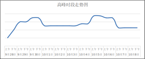 (2)假期中期(10月1日至4日)。出游流量交织,保持高位运行,高速公路流量小幅回落,城市周边度假区、景区道路交通压力增大,出行拥堵缓行较为分散,主要分布在9时至12时、15时至18时。
