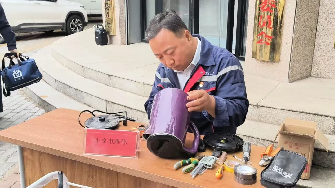 便民服务区内,义剪区的两位义剪理发师贴心地根据每个人的需求和喜好设计发型;磨刀磨剪子的师傅手法娴熟地对居民递来的物件仔细打磨,解决他们厨房和生活中的小麻烦;小家电维修的师傅正在为居民检查热水壶问题,认真的态度无不透着贴心与温暖。这些看似微不足道的服务,却实实在在地让居民的日常生活变得更加便捷和舒心。社区党员干部和志愿者与大家围坐一起,耐心倾听他们讲述生活琐事,并进行金融和反诈知识宣传,既传递浓浓的邻里情,又普及相关知识,提高大家的风险防范意识和自我保护能力。