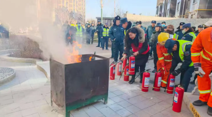 与此同时,一场涵盖200余名居民的志愿服务活动正在新利社区同步开展。除了义剪义诊、政策宣讲以外,新利社区、新利村还联合辖区物业公司开展了一场贴近实际、注重实效的消防演练活动,社区民警与消防志愿者结合冬季火灾隐患特点,系统讲解火情处置要点、火灾逃生技巧,现场演示灭火器规范操作方法,提升居民和工作人员的火灾应急处置能力和自救互救能力。