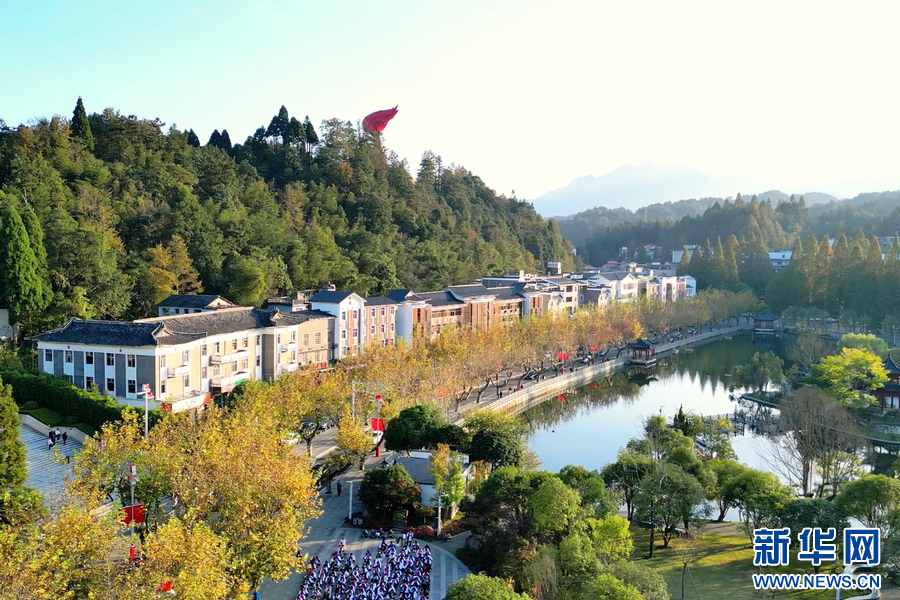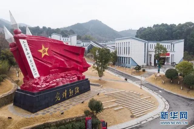 2021年1月26日在湖南省浏阳市文家市镇秋收广场拍摄的红旗雕塑(无人机照片)。新华社记者 陈思汗 摄