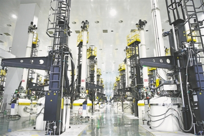 隆基光伏年产15GW单晶硅棒及切片项目总投资45亿元,占地约445亩,主要安装单晶炉、切方机、抛光机及金刚线切片机等生产设备,形成年产15GW高效单晶硅棒切片生产能力。目前,项目已建成投产,建成从拉棒、切片、电池、组建的光伏全产业链。记者 左鸣远 钱建忠 摄