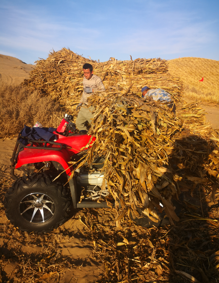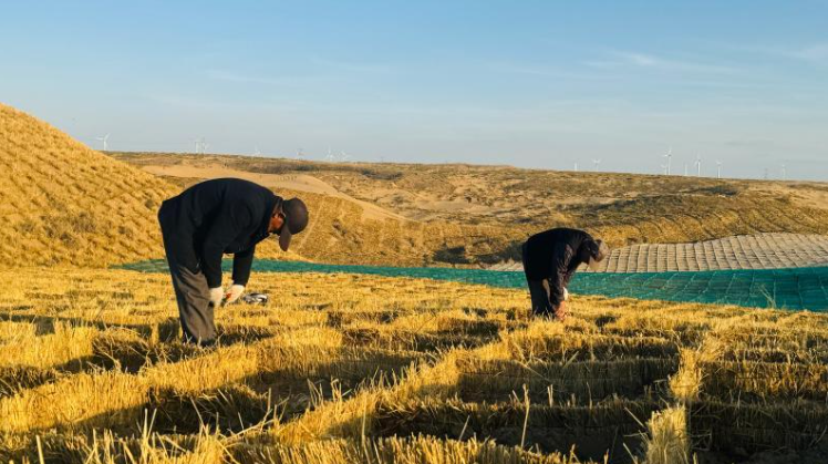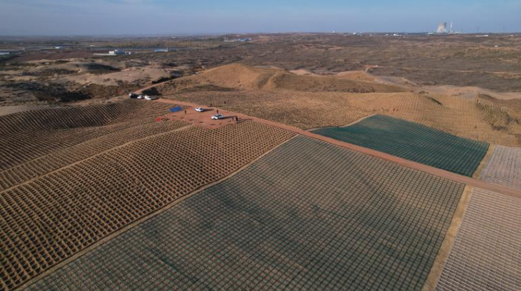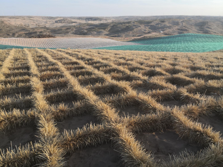 为提高治理成效,项目采取多种工程固沙和生物治沙相结合的综合治理措施,运用“草方格+沙结皮”的方法治理流动沙地,推广灌木高效水钻植苗技术。“刷状网绳式草方格、降解袋、玉米秸秆和尼龙网等多种类型的沙障,相比于传统草方格使用寿命可维持5年以上。探索沙生固沙植物及多样性造林新模式,引进了沙冬青、沙拐枣等根系发达的耐旱耐寒植物。”白金科说,新技术和新方法的应用,加之良好的气候条件,使得树苗的成活率提高至80%以上。