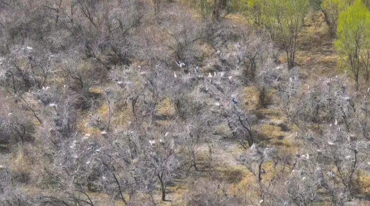 成群的候鸟在天河湾国家级湿地公园沙枣林内栖息。