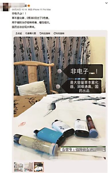 近段时间以来,有关部门持续加大对“奶茶杯”“可乐罐”等一些非法电子烟的整治。而悄然走红的、商家宣称不含尼古丁(烟碱)的本草、中药等雾化器,是否属于电子烟乃至非法电子烟呢?