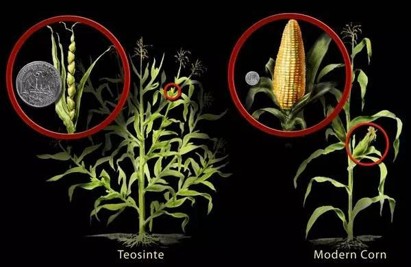 玉米的祖先是谁?这个问题曾经有不少争议,不过目前大家比较公认的是,玉米的起源与演化,与大刍草密切相关。8700 年前的墨西哥南部人们就种植大刍草,当时的大刍草与现在的玉米形态上相差甚远,穗子可能也就比个硬币的直径(约 24mm 左右)长一点点,种子数也寥寥无几,让人根本没有啃的动力。到了 6200 年前,大刍草从 2 排种子变成了 4 排,在距今 2000-3000 年前,玉米种子的数量达到了 10 排;1000 年前,玉米终于差不多成了现代玉米的模样,籽粒大小和数量也跟今天类似了,值得一啃。