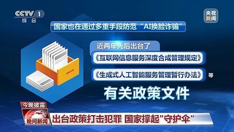 此外,国家也在通过多重手段防范“AI换脸诈骗”,近两年,相关部门先后出台了互联网信息服务深度合成管理规定,生成式人工智能服务管理暂行办法等有关政策文件。先后开展了“互联网深度合成算法备案”“大语言模型算法备案”等有关工作。严厉打击利用AI换脸、变声等手段实施的违法犯罪行为。