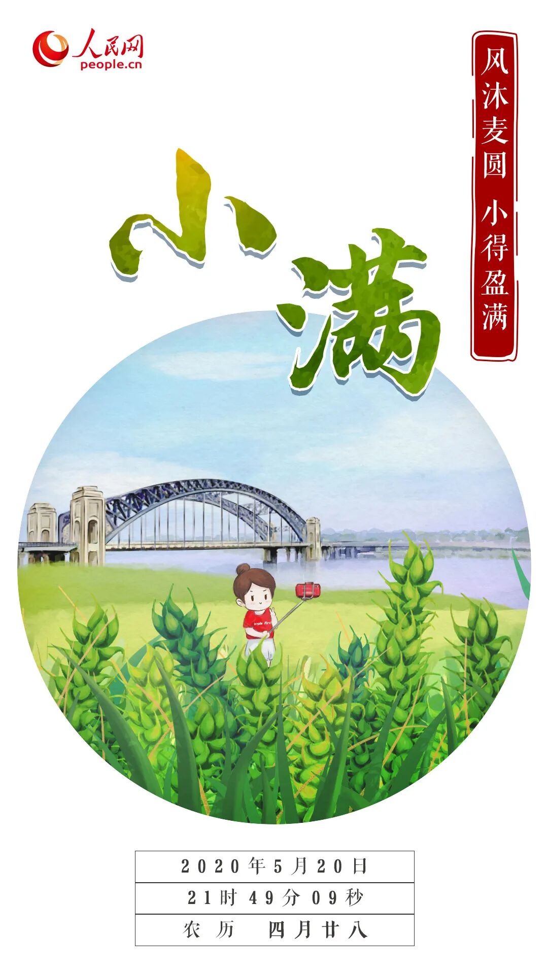 “小满”是二十四节气中的第八个节气。“小满小满,麦粒渐满”,是说从“小满”开始,北方大麦、冬小麦等夏熟作物开始灌浆,“小得盈满”,即籽粒逐渐饱满,但尚未成熟,是“麦穗初齐稚子娇,桑叶正肥蚕食饱”的时节。