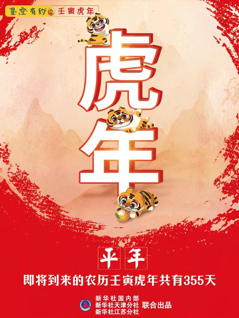 农历辛丑牛年由于少了“大年三十”,过了腊月二十九,就直通壬寅虎年正月初一。成灼介绍,天文学上有一个回归年的历法概念,即太阳中心自西向东沿黄道从春分点到春分点所经历的时间。一个回归年约365.24天,比有12个月的农历平年多了大约11天。为了协调朔望月周期和回归年周期,农历会设置“闰月”,即大约19个农历年中,设置7个闰年。农历闰年包含了13个农历月,长度约384天。而即将到来的农历壬寅虎年是一个平年,年长只有355天。