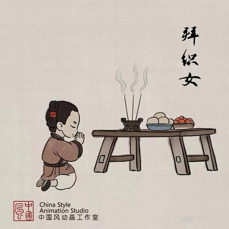 七夕拜织女,于案前焚香礼拜后,大家一起围坐在桌前,一面吃花生,瓜子,一面朝着织女星座,默念自己的心事。如少女们希望长得漂亮或嫁个如意郎、少妇们希望早生贵子等,都可以向织女星默祷。