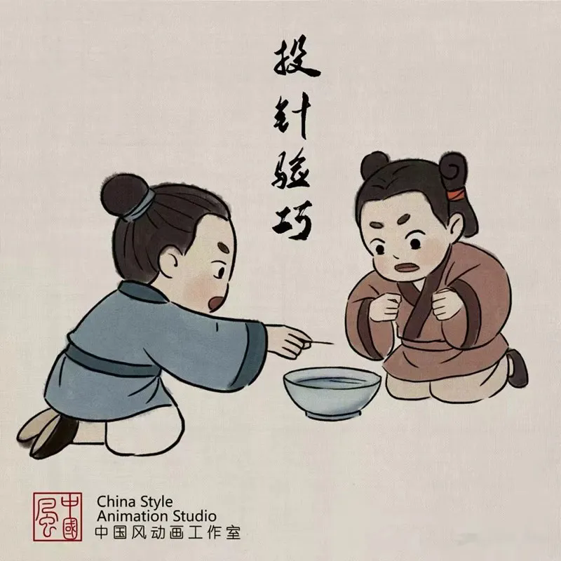 投针验巧是七夕穿针乞巧风俗的变体,源于穿针,又不同于穿针,是明清两代盛行的七夕节俗。所谓投针验巧,即是先准备一只面盆,放在天井里,倒入“鸳鸯水”,即把白天取的水和夜间取的水混合在一起。但常常把河水、井水混在一起倒入面盆就算成了,面盆和水要露天过夜,再经第二天即七月初七白天太阳一晒,到中午或下午就可以“验巧”了。原来面盆里的水,经过半天太阳光照射,表面依稀生成薄膜,于是取缝衣针,轻轻平放在水面上,针不会下沉,水底下,就出现针影,这针影若是笔直的一条,即是“乞巧”失败,若是针影形成各种形状,或弯曲,或一头粗,一头细,或是其他图形,便是“得巧”。