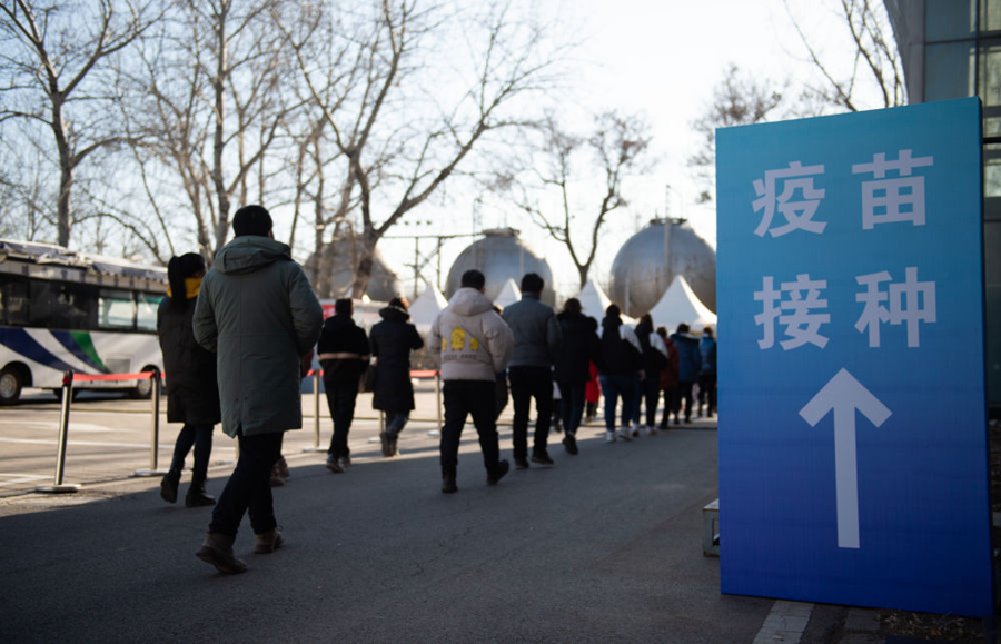 2021年1月5日,在北京,群众排队等待疫苗接种。新华社记者 陈钟昊 摄