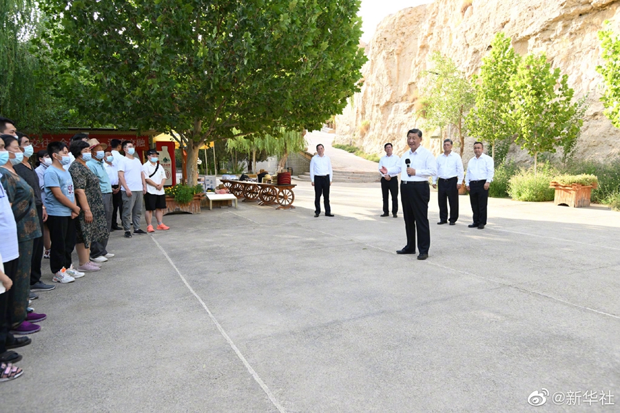 14日下午,习近平总书记来到新疆吐鲁番市,先后考察了葡萄沟、高昌区亚尔镇新城片区新城西门村、交河故城,了解当地发展特色产业、推进乡村振兴、文化遗产保护利用等情况。