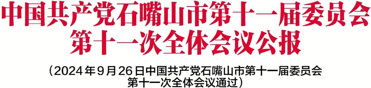 中国共产党石嘴山市第十一届委员会第十一次全体会议于2024年9月26日举行。