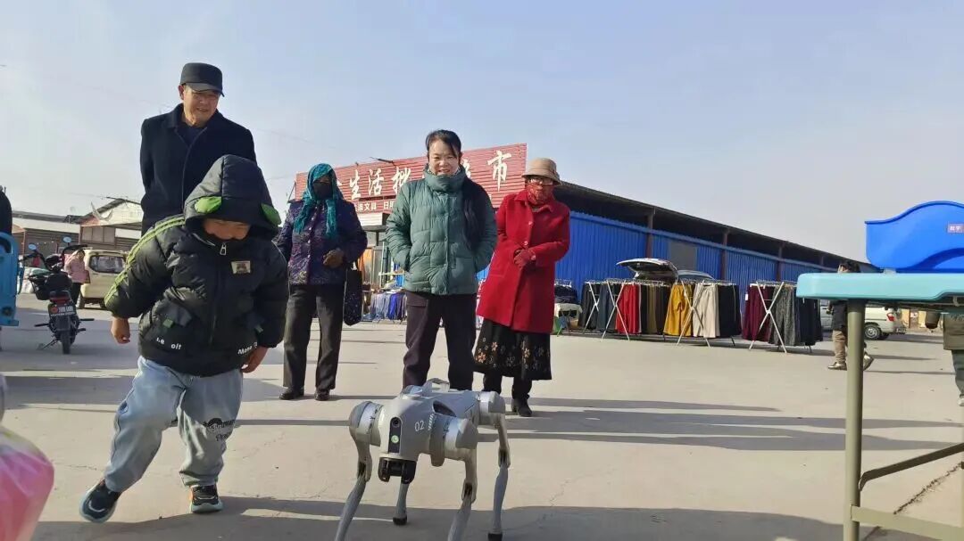 尽管时值寒冬,活动现场却暖意融融、人气高涨。科普大篷车变身“移动科技馆”,展出了涵盖数学思维、力学原理、电磁现象等领域的12件互动科普展品,吸引众多村民驻足体验、亲手操作。智能机器狗表演成为全场焦点,灵活的动作与智能反应引发阵阵掌声与欢笑,生动展现了人工智能的科技魅力。科技志愿者向群众累计发放实用资料1000余份、科普宣传品400余件。