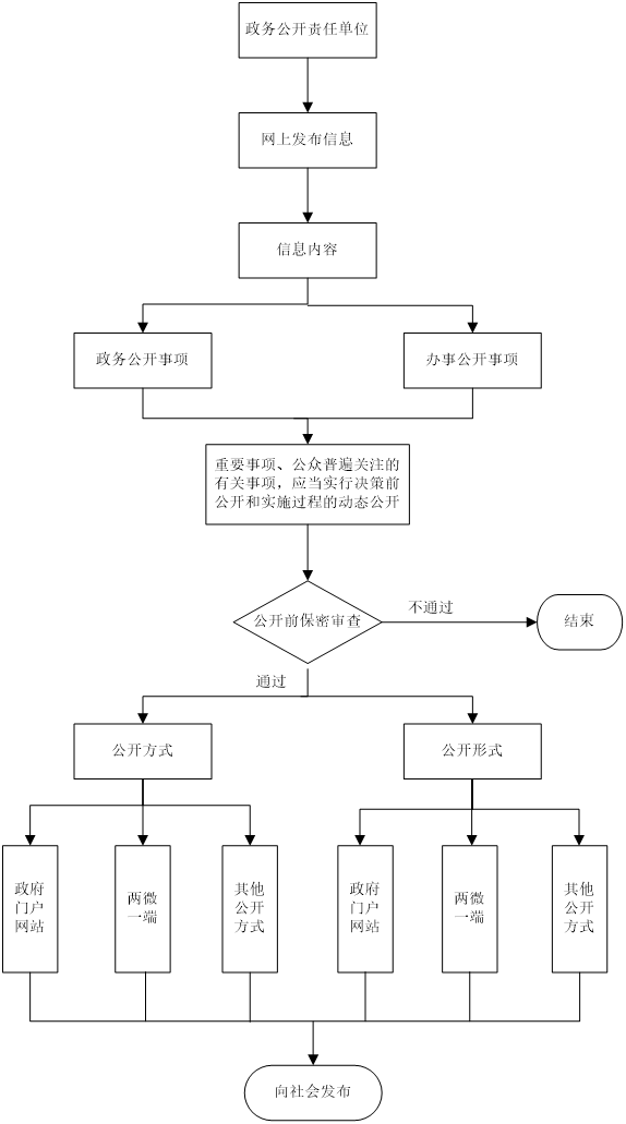 9.3政务公开方式可通过政府公报、政府网站、新闻发布会以及报刊、广播、电视、公告栏等便于公众知晓的方式公开。