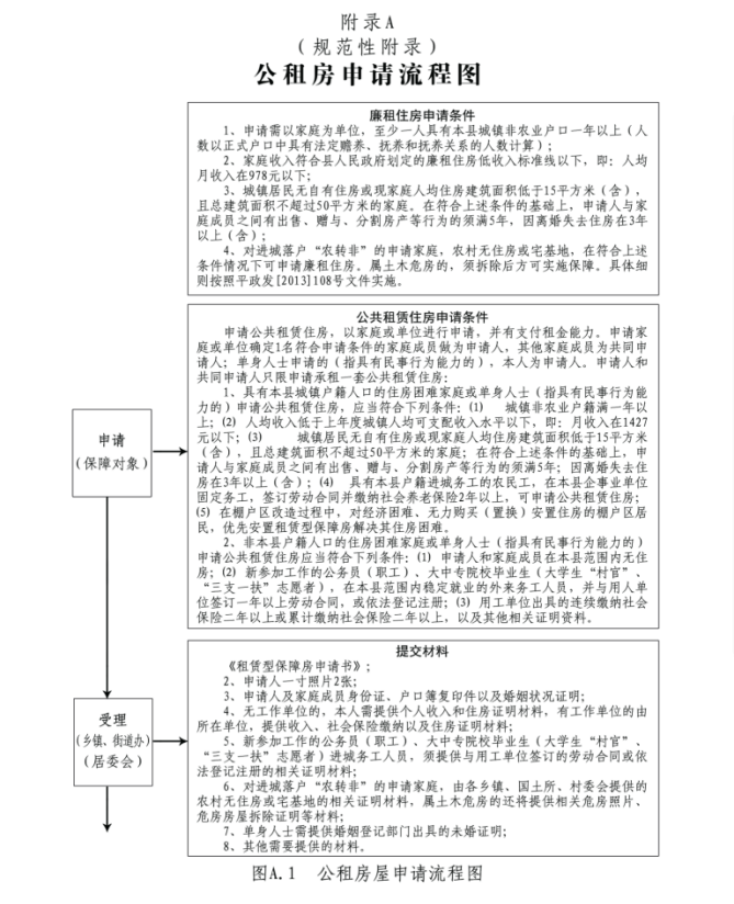 本标准规定了保障性住房管理要求、申请条件、申请材料、办理方式及监督考核等内容。