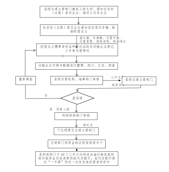5.1成品油价格改革补贴对象为依法取得经营资格,合法经营,在县从事农村班线客(水)运、出租车客运、城市公交客运经营的运输企业及经营业户。