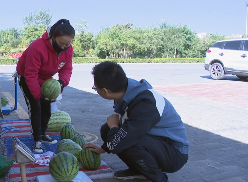 时下,正是瓜果飘香的丰收季。在永康民生家园北门口,悬挂着“便民服务直供摊点”字样的蓝色招牌十分醒目,凉棚下蔬菜、水果等摊位整齐有序地摆放着,来往居民正在进行选购。